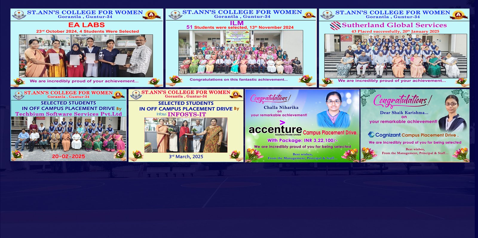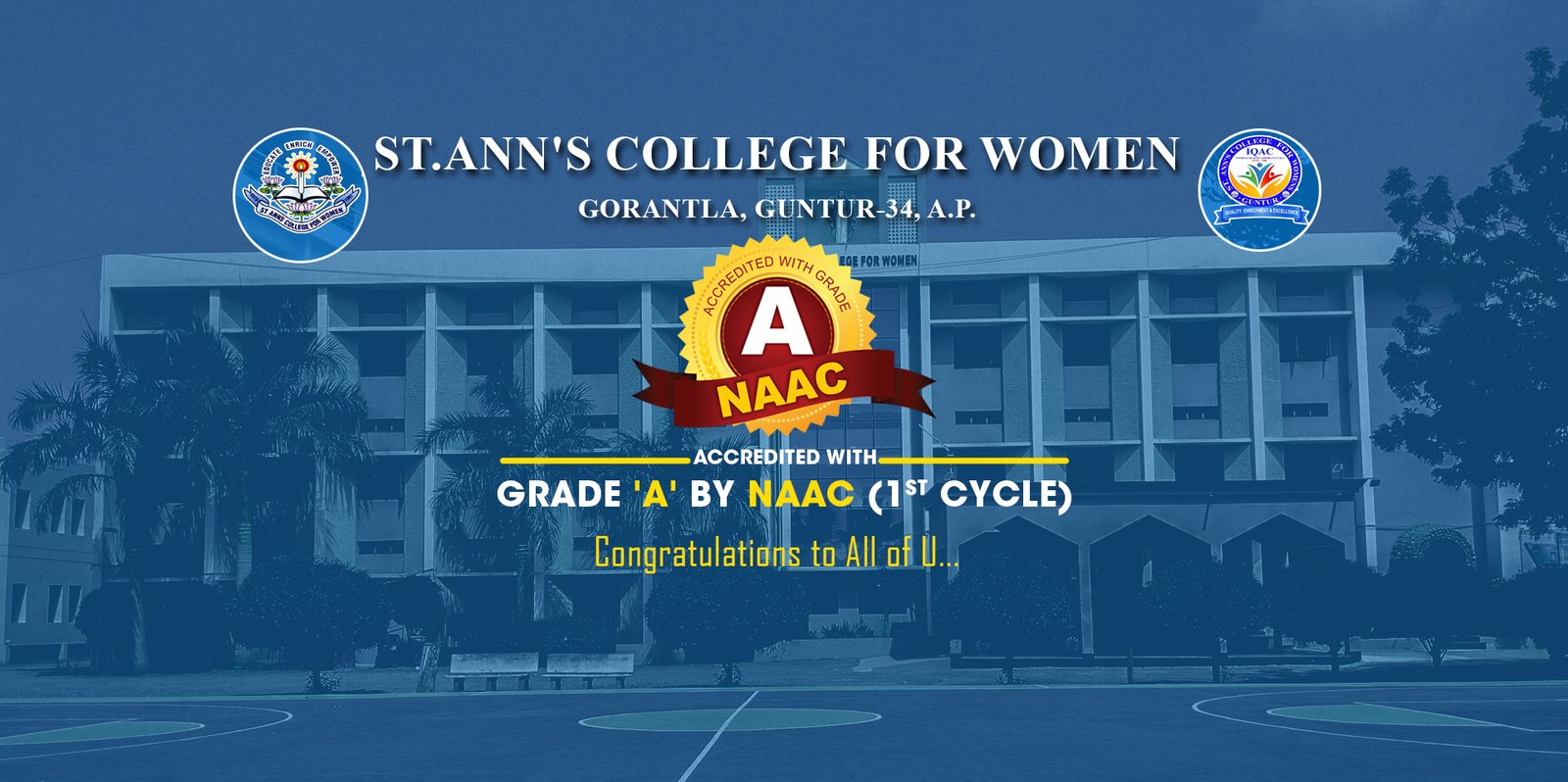 St. Ann’s college for women was established in 1997 to uplift the rural women, impart intellect and spiritual integrity into the young lives and serve them for overall development. It is affiliated to Acharya Nagarjuna University and ever since its inception it has been emerging as a universal cosmopolitan and prestigious college in Guntur.