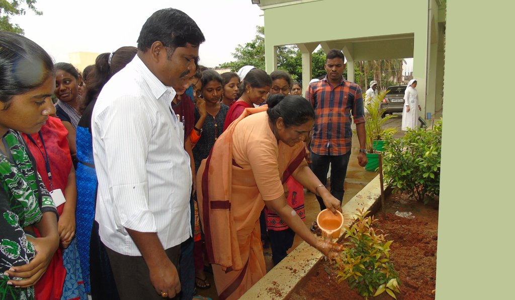 Plant a tree, green the earth ,clean the air ,live happily. On 11th August ,2018, to beautify the campus, the students of Life Sciences planted saplings in the college campus. The program was inaugurated by the Principal and Correspondent Rev.Dr.Sr.Fatima Rani.P by planting a Rose sapling on either sides of grotto of Fatima Matha.